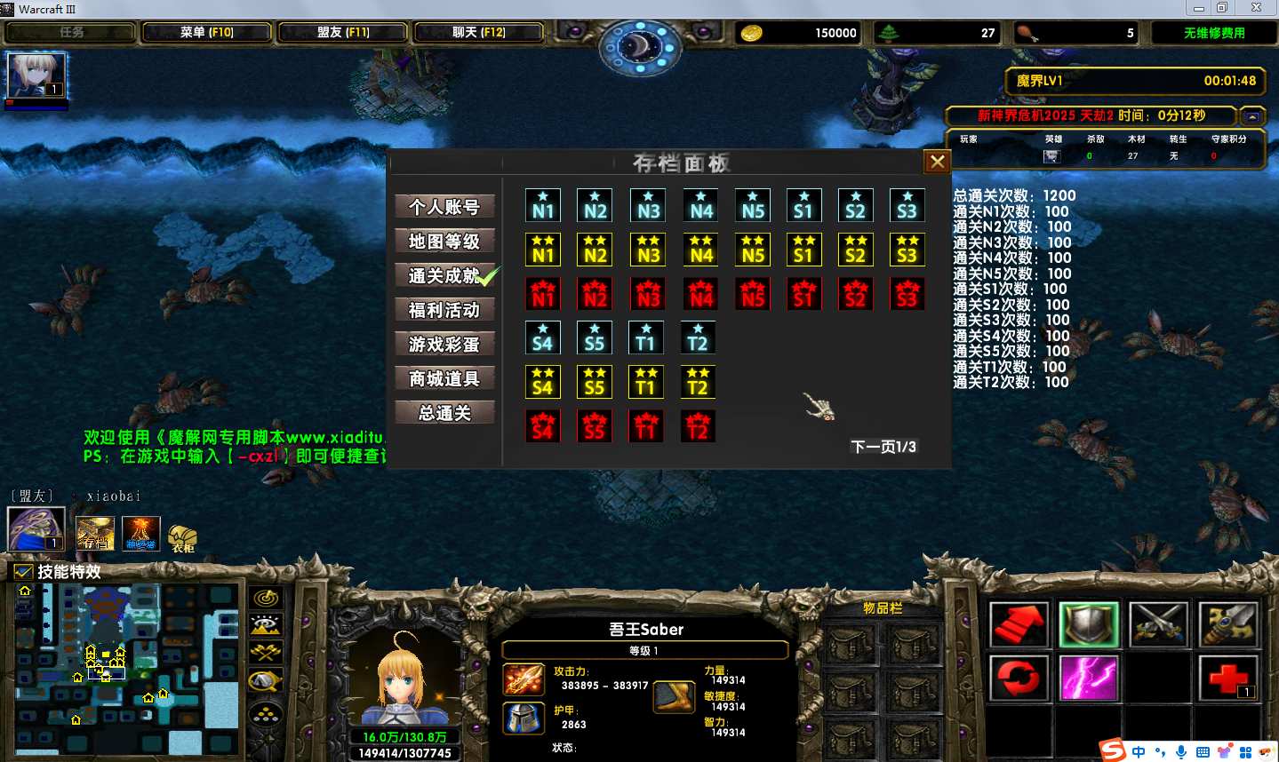 地图名字:新神界危机2025 1.0.61地图下载+全商城特权+全存档+隐藏英雄+无CD+指令功能