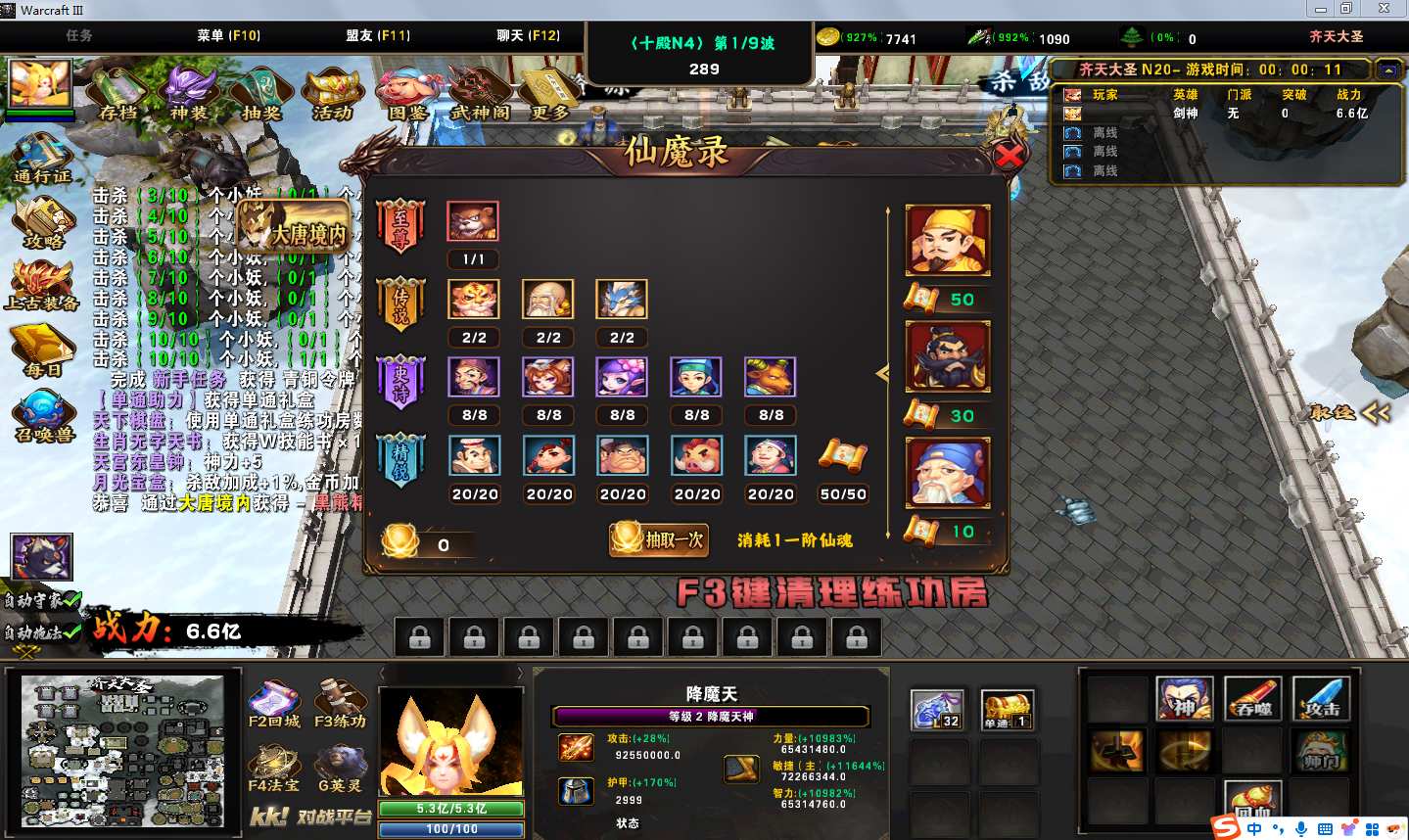 地图名字:齐天大圣1.0.176地图下载+全商城特权+全存档+隐藏英雄+无CD+指令功能