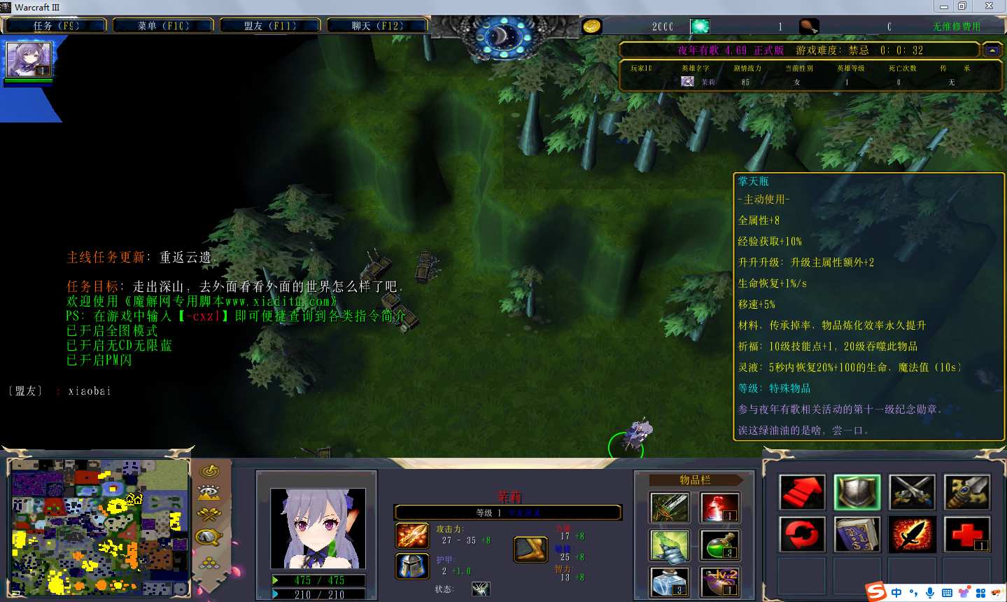 地图名字:夜年有歌4.6.9地图下载+全商城特权+全存档+隐藏英雄+无CD+指令功能
