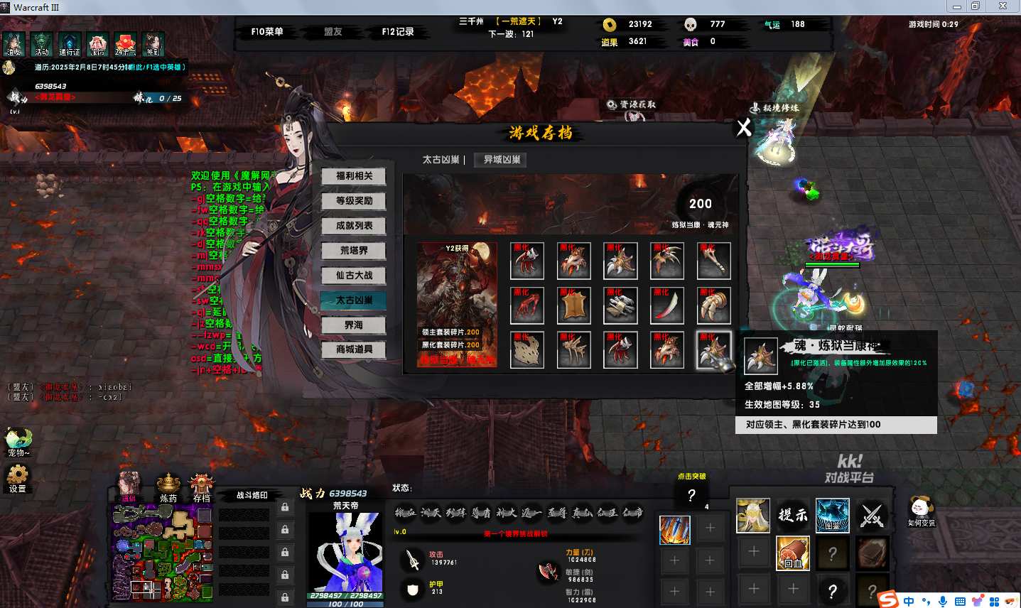 地图名字:一荒遮天1.1.49地图下载+全商城特权+全存档+隐藏英雄+无CD+指令功能