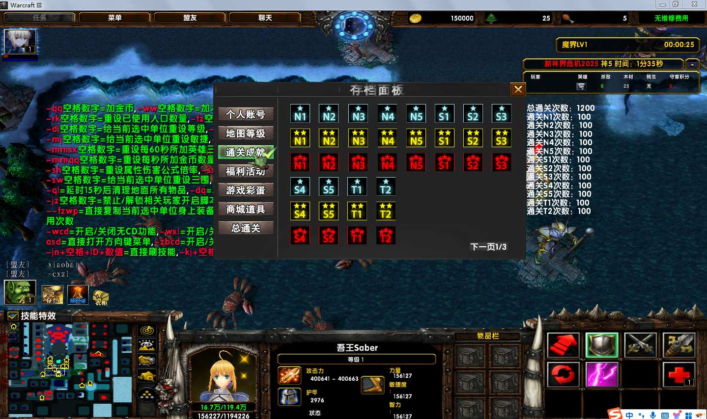 地图名字:新神界危机2025 1.0.65地图下载+全商城特权+全存档+隐藏英雄+无CD+指令功能
