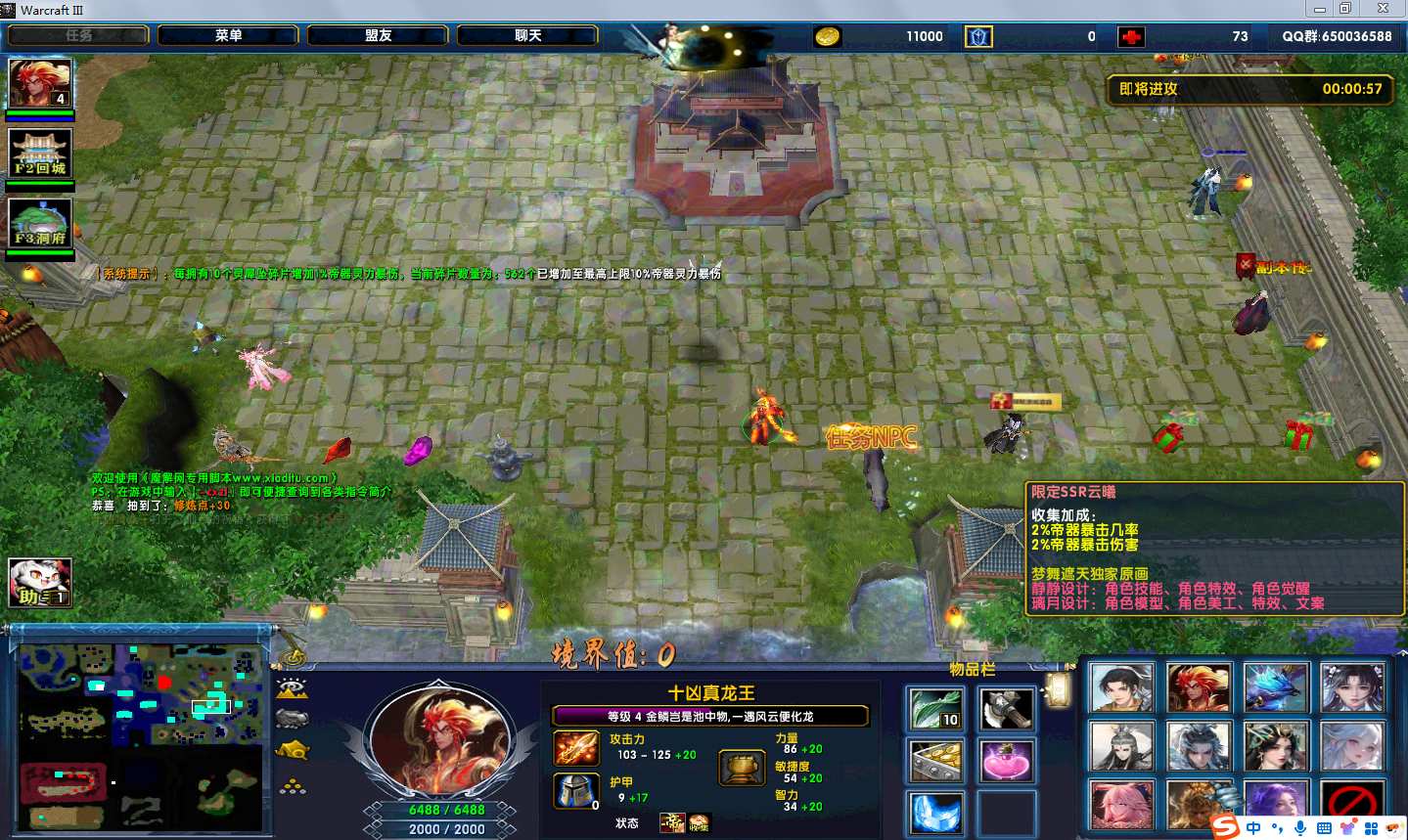梦舞遮天4.8.68地图下载+全商城特权+全存档+隐藏英雄+无CD+指令功能: