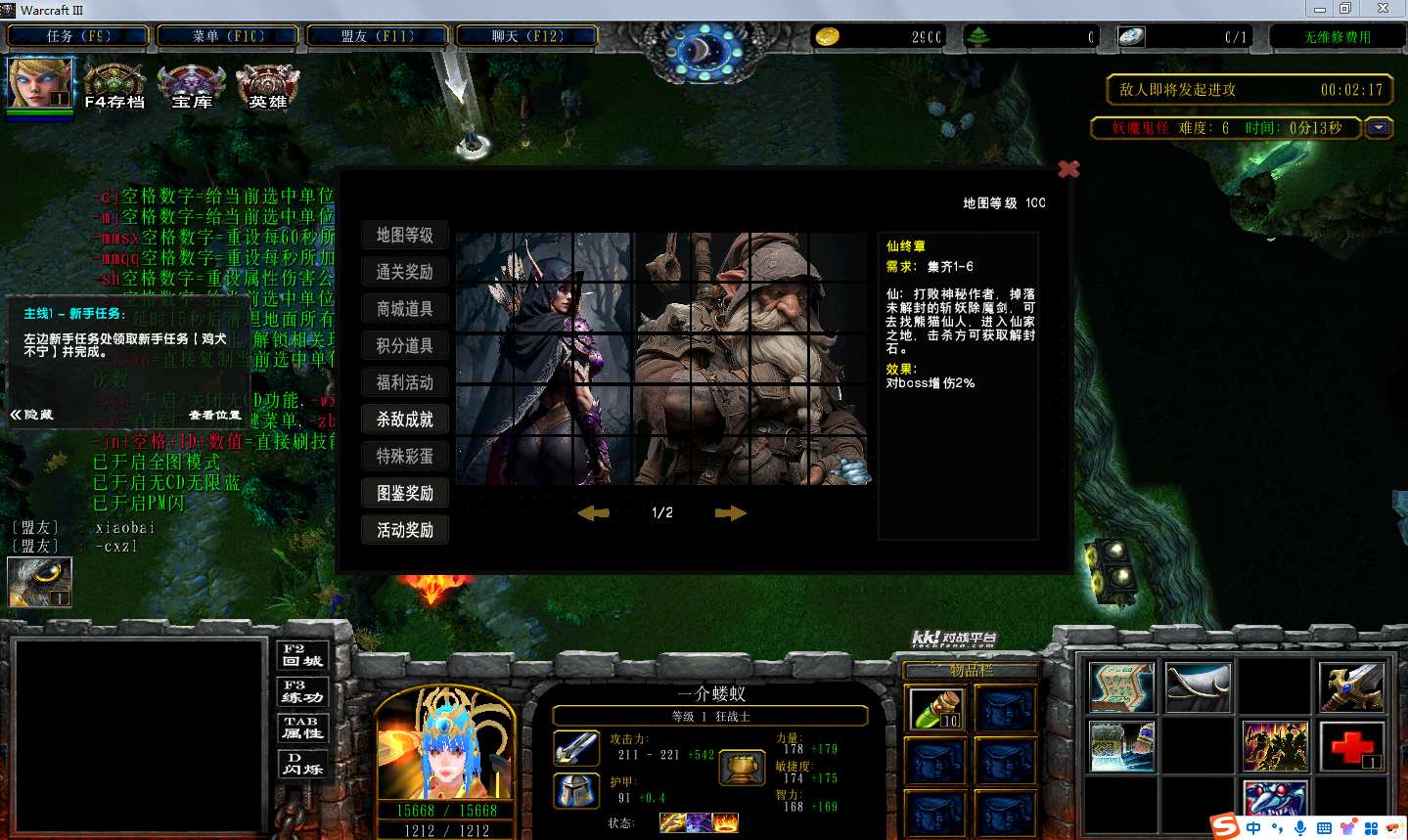 地图名字:山妖出山1.0.11地图下载+全商城特权+全存档+隐藏英雄+无CD+指令功能
