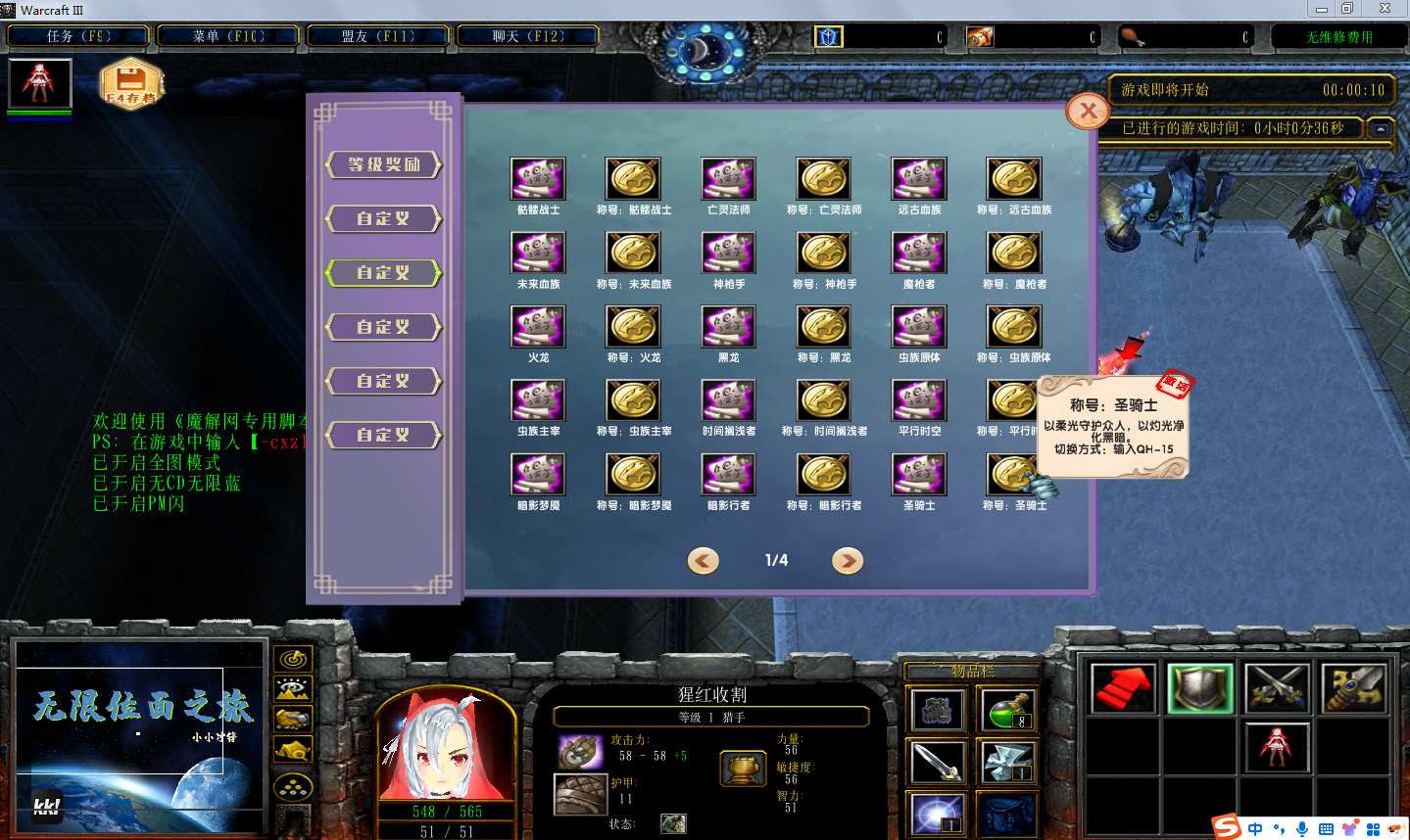 地图名字:无限位面之旅1.9.20地图下载+全商城特权+全存档+隐藏英雄+无CD+指令功能