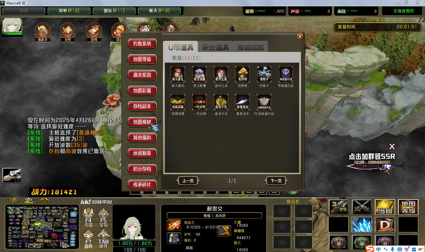 | 技能菜单【光环类技能】 | 自动化菜单【自动加钱木,提升英雄三围】 |