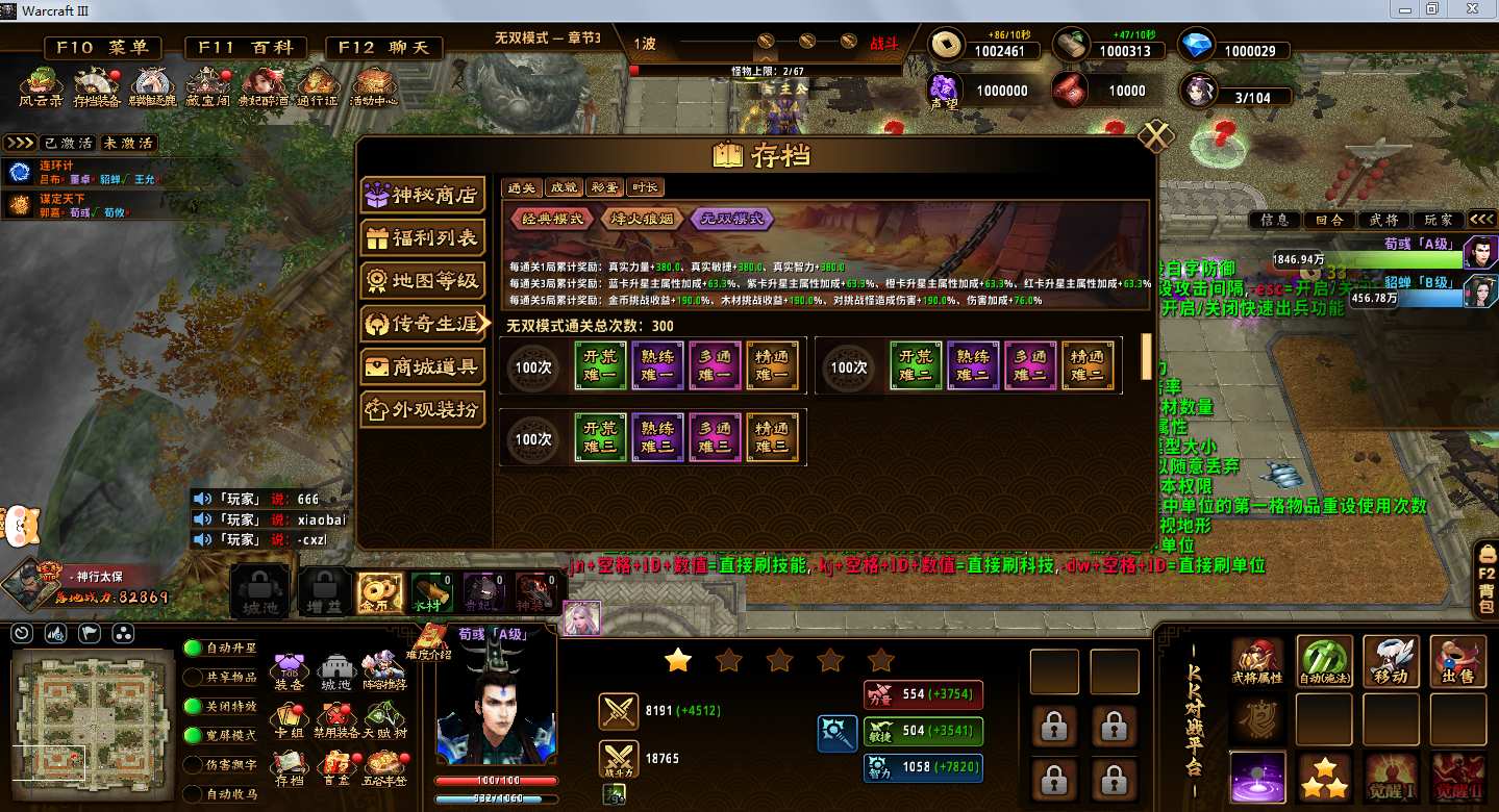 地图名字:戰三国1.1.22地图下载+全商城特权+全存档+内测指令+无CD+指令功能