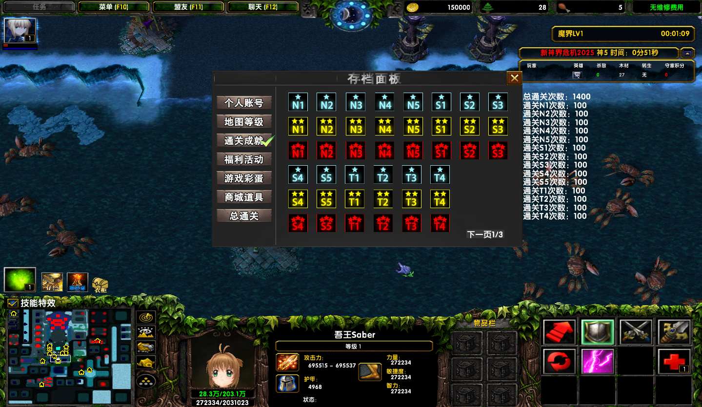 地图名字:新神界危机2025 1.0.67地图下载+全商城特权+全存档+隐藏英雄+无CD+指令功能