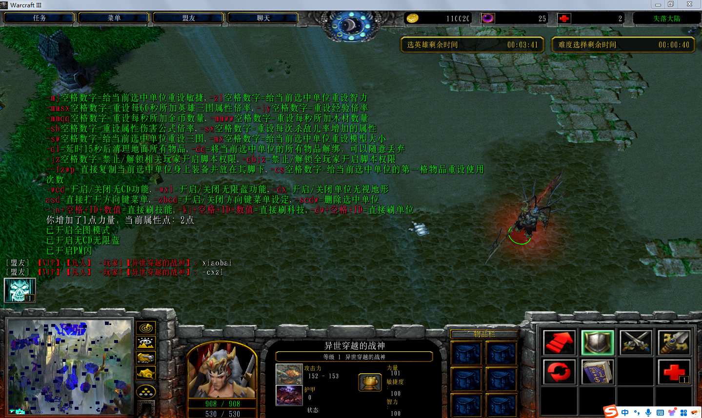 地图名字:失落大陆9.2.0地图下载+全商城特权+全存档+隐藏英雄+无CD+指令功能