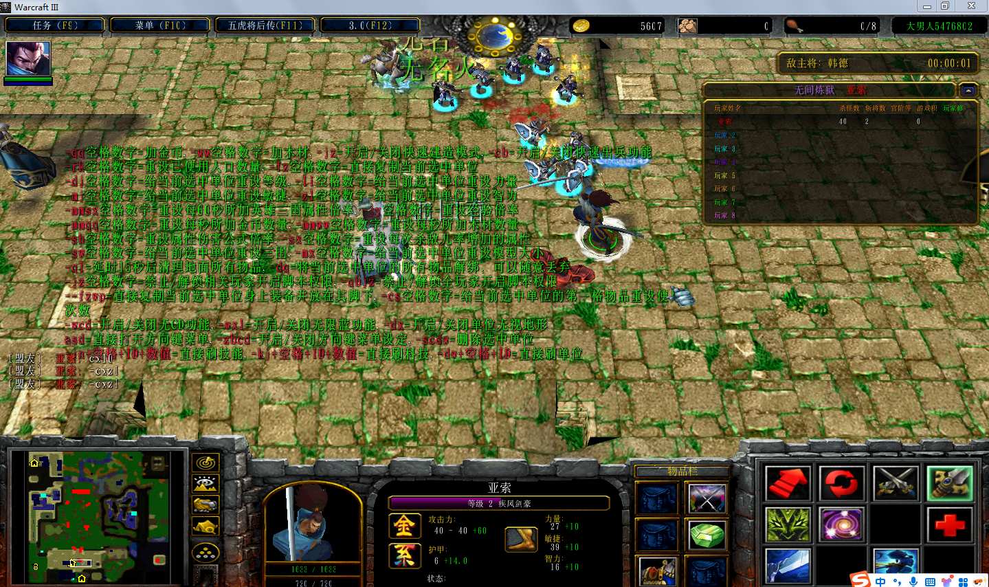 地图名字:五虎将后传I3.0.95地图下载+全商城特效+全英雄+全定制内容+无CD+指令功能