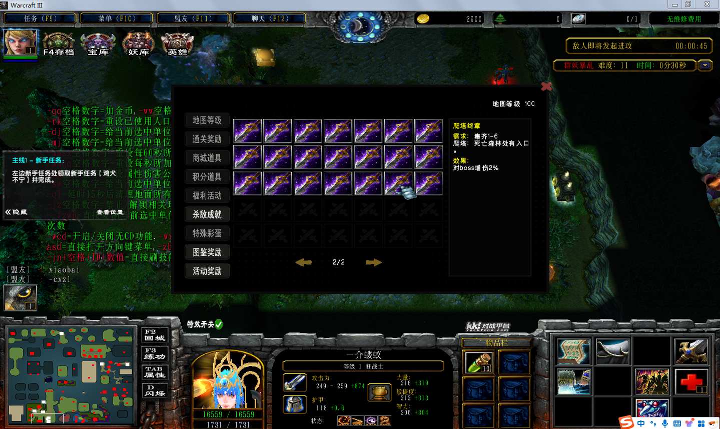 地图名字:山妖出山1.0.17地图下载+全商城特权+全存档+隐藏英雄+无CD+指令功能