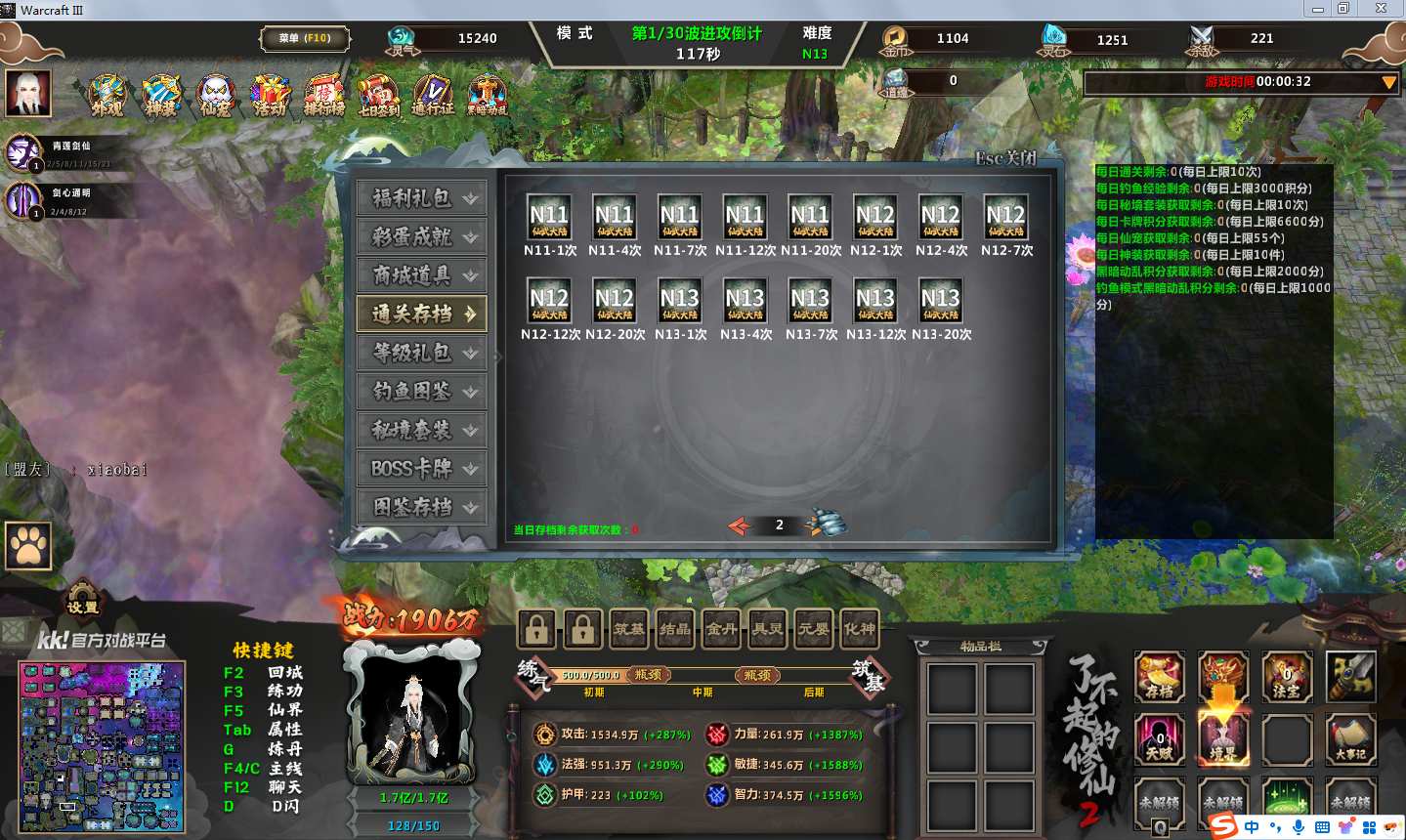 地图名字:了不起的修仙2 1.5.2地图下载+全商城特权+全存档+无CD+指令功能