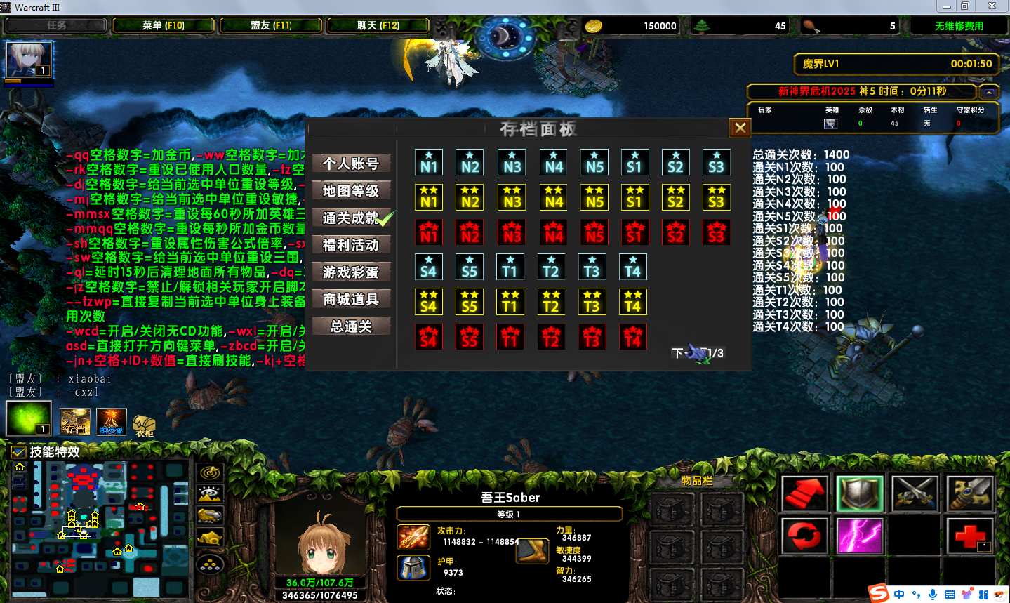 地图名字:新神界危机2025 1.0.75地图下载+全商城特权+全存档+隐藏英雄+无CD+指令功能