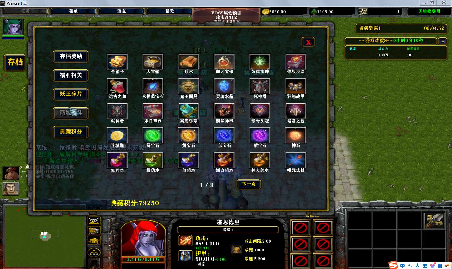| 技能菜单【光环类技能】 | 自动化菜单【自动加钱木,提升英雄三围】 |