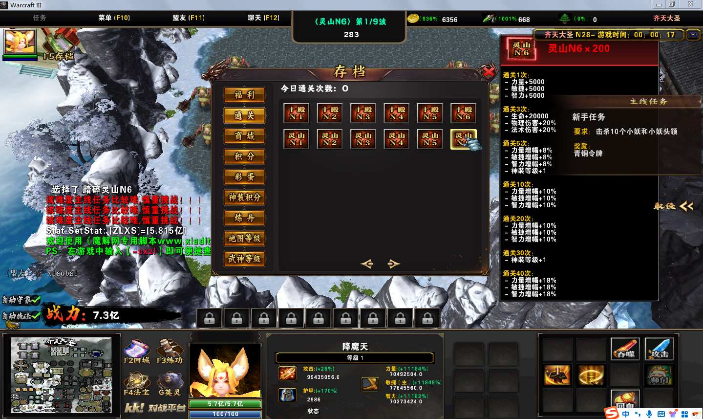 地图名字:齐天大圣1.0.188地图下载+全商城特权+全存档+隐藏英雄+无CD+指令功能
