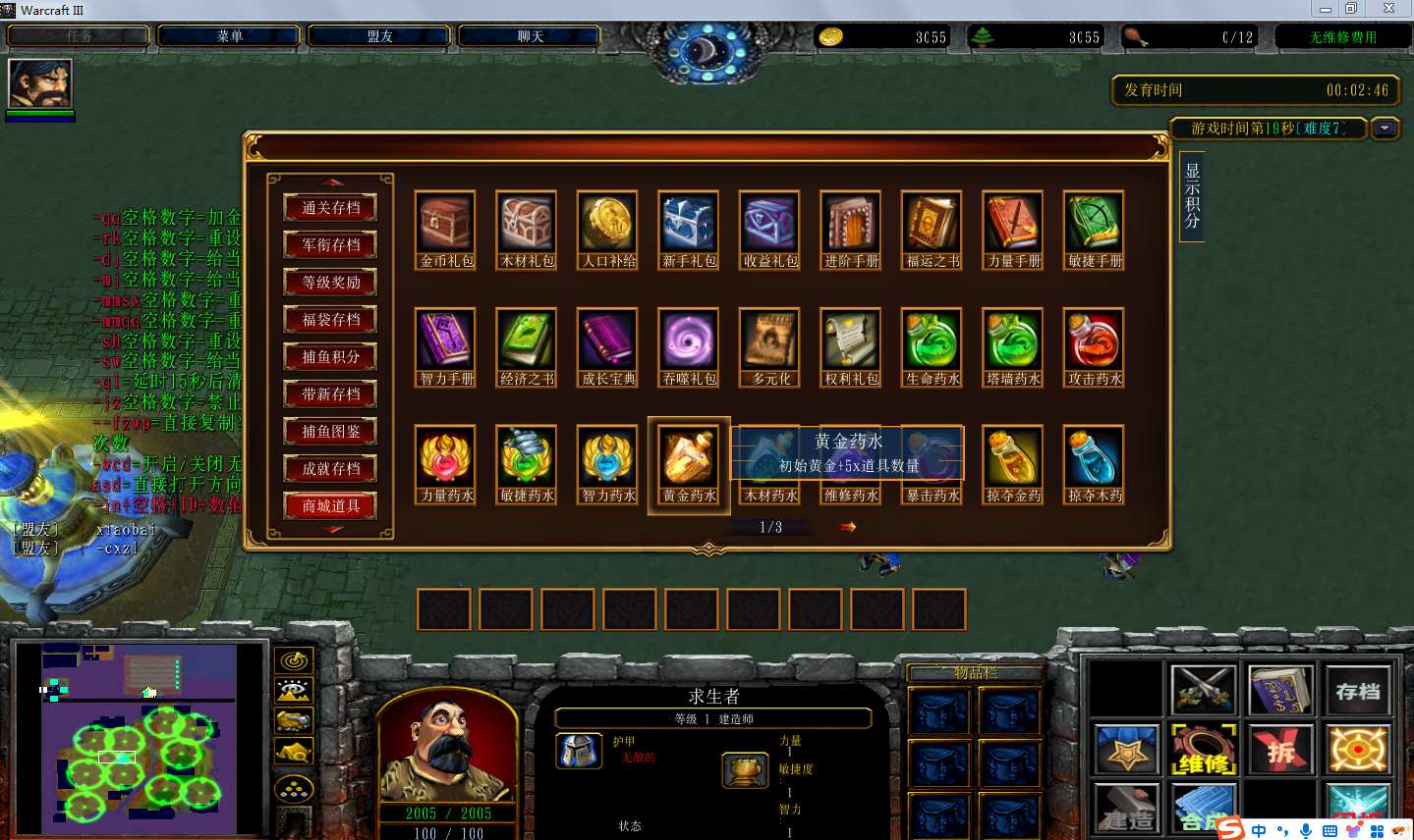 | 技能菜单【光环类技能】 | 自动化菜单【自动加钱木,提升英雄三围】 |