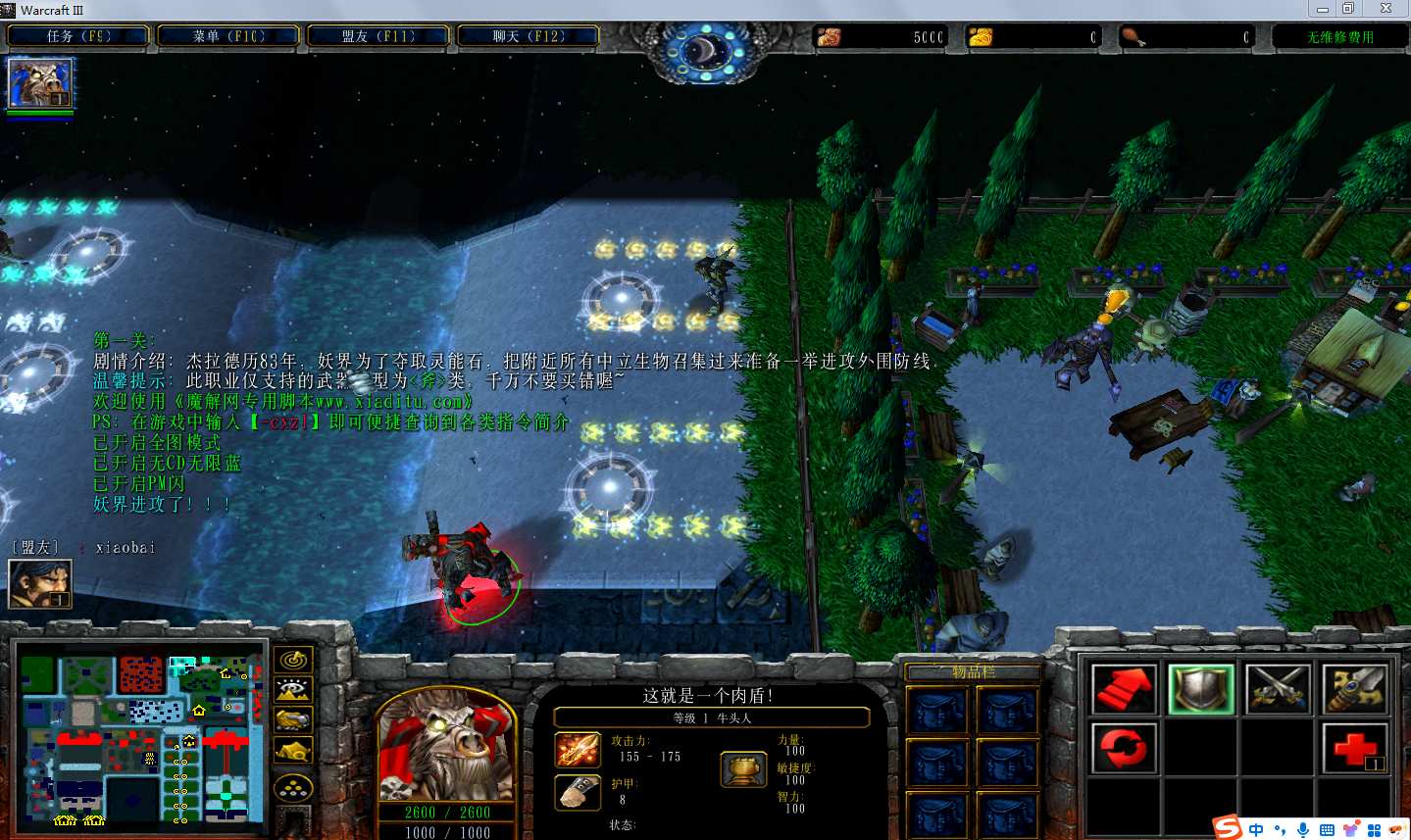 | 技能菜单【光环类技能】 | 自动化菜单【自动加钱木,提升英雄三围】 |