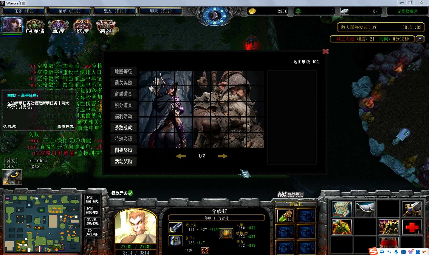地图名字:山妖出山1.0.35地图下载+全商城特权+全存档+隐藏英雄+无CD+指令功能