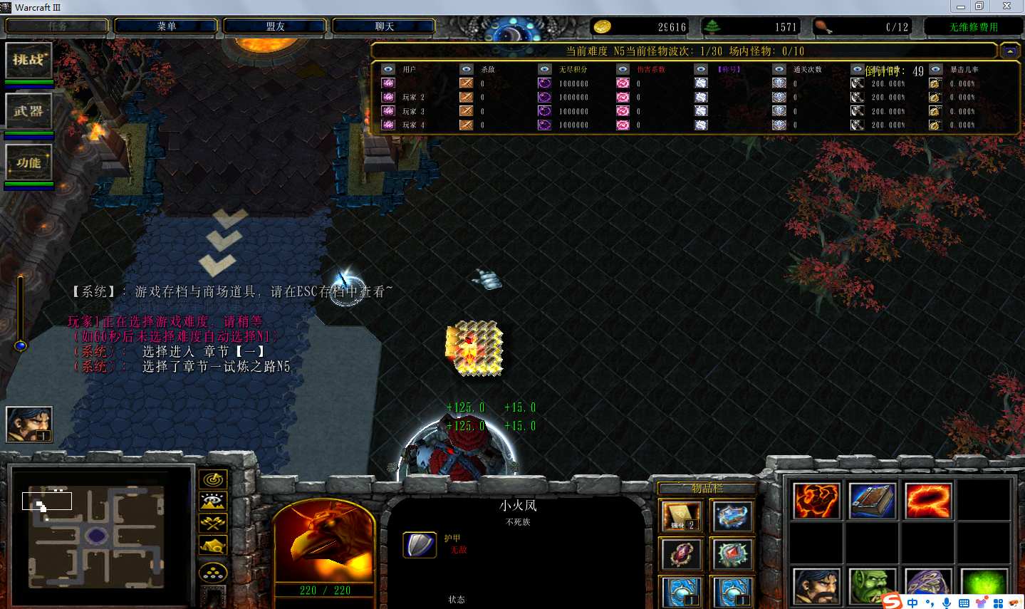 | 技能菜单【光环类技能】 | 自动化菜单【自动加钱木,提升英雄三围】 |