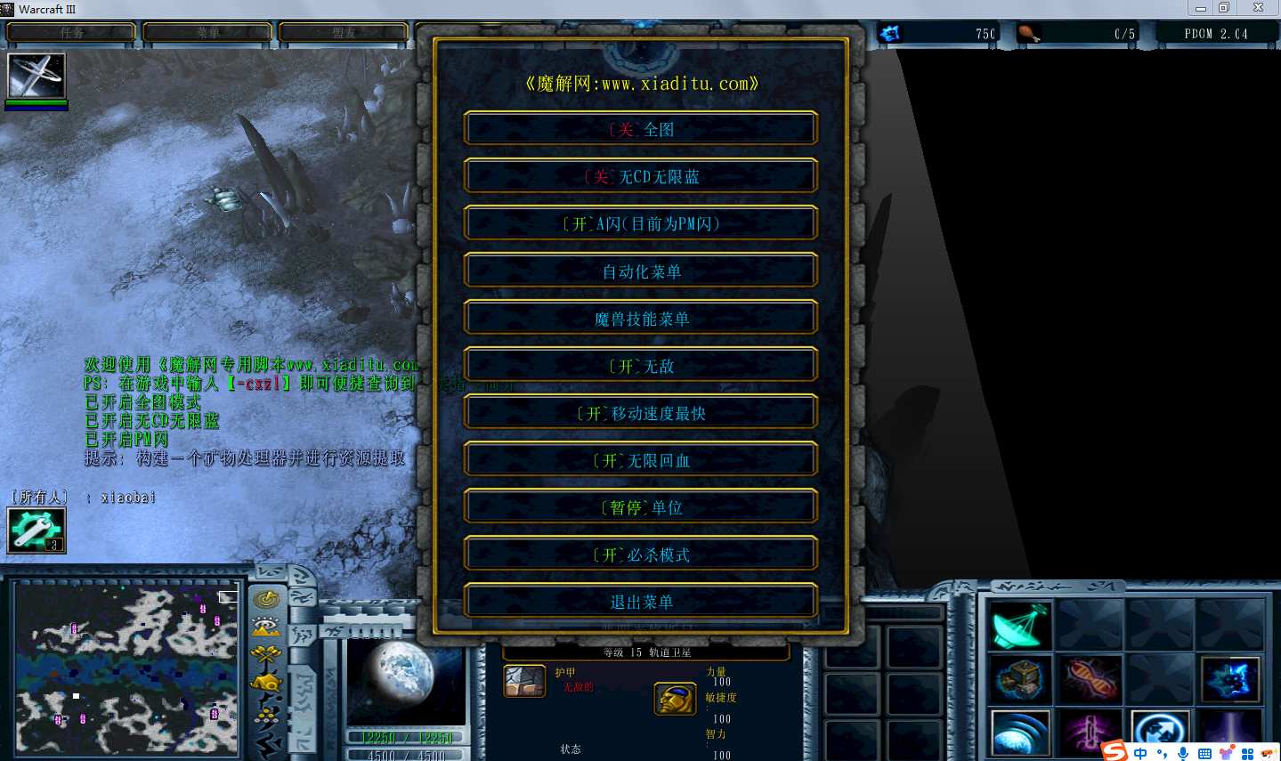 | 技能菜单【光环类技能】 | 自动化菜单【自动加钱木,提升英雄三围】 |
