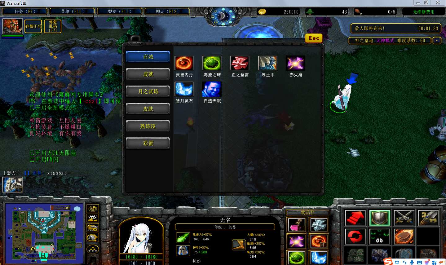 地图名字:神之墓地2.9.87地图下载+全商城特权+全存档+无CD+指令功能