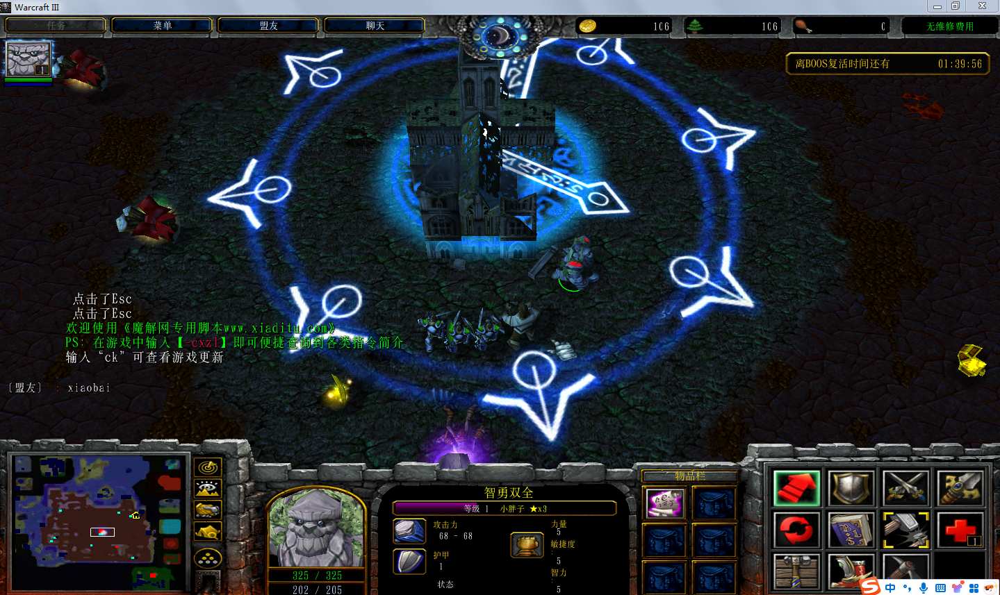 | 技能菜单【光环类技能】 | 自动化菜单【自动加钱木,提升英雄三围】 |
