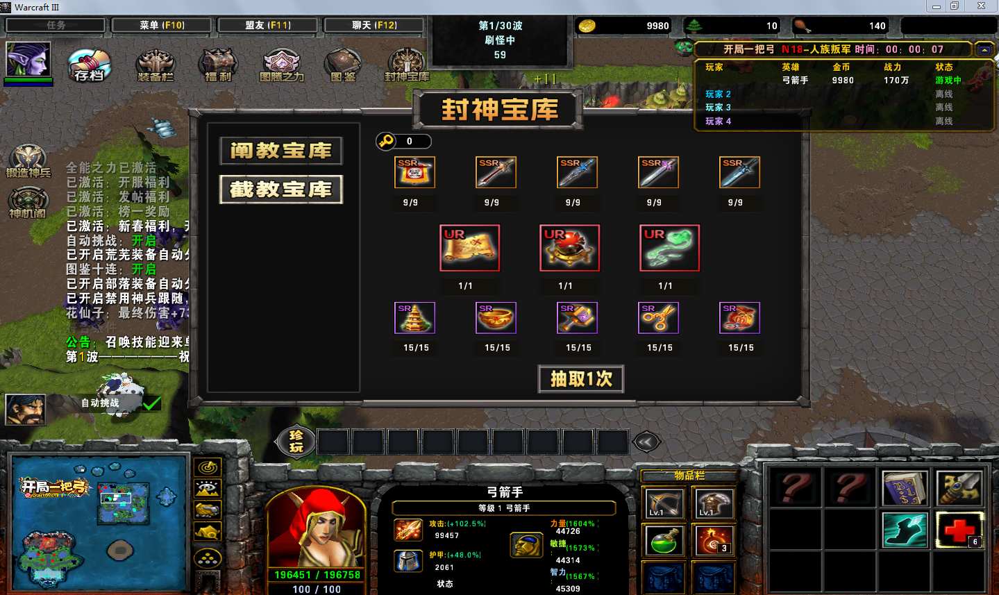 地图名字:开局一把弓1.0.123地图下载+全商城特权+全存档+无CD+指令功能