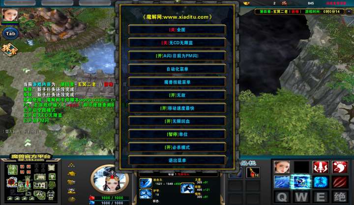 | 技能菜单【光环类技能】 | 自动化菜单【自动加钱木,提升英雄三围】 |