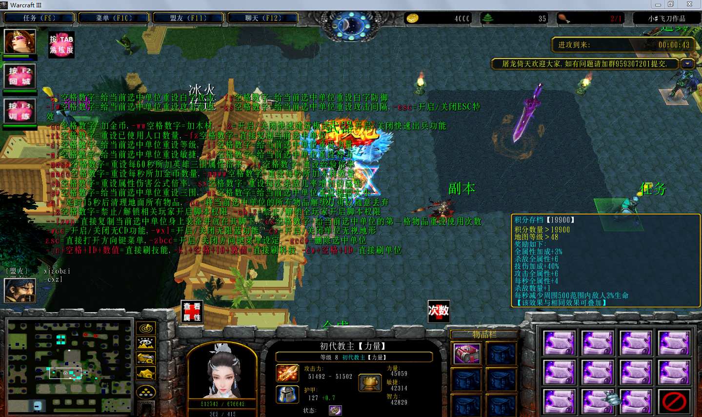 地图名字:屠龙倚天5.5.0地图下载+全商城特权+全存档+隐藏英雄+无CD+指令功能