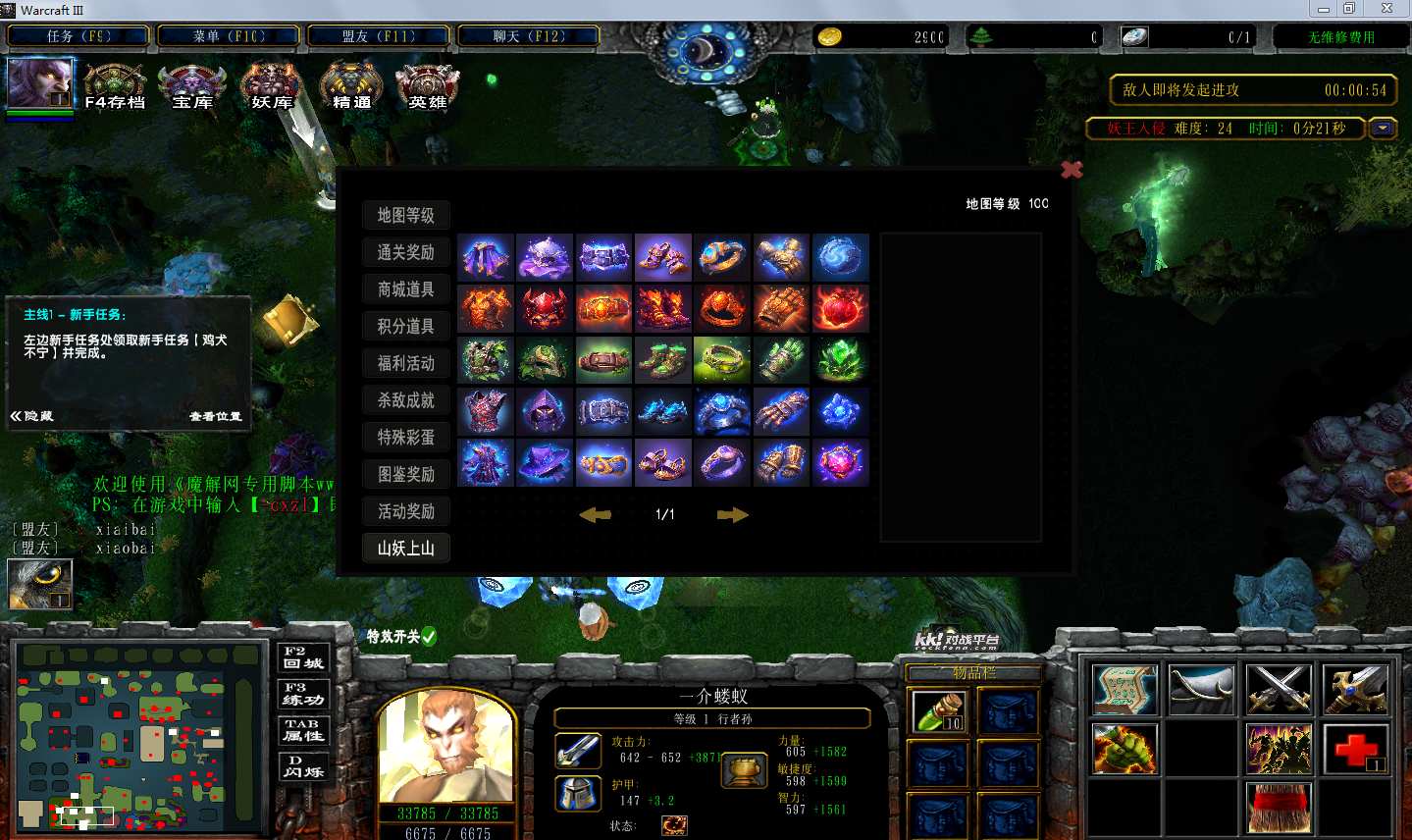地图名字:山妖出山1.0.52地图下载+全商城特权+全存档+隐藏英雄+无CD+指令功能