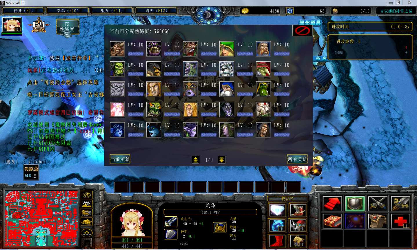 吉安娜的冰雪之城1.9.9地图下载+全商城特权+全存档+隐藏英雄+无CD+指令功能:
