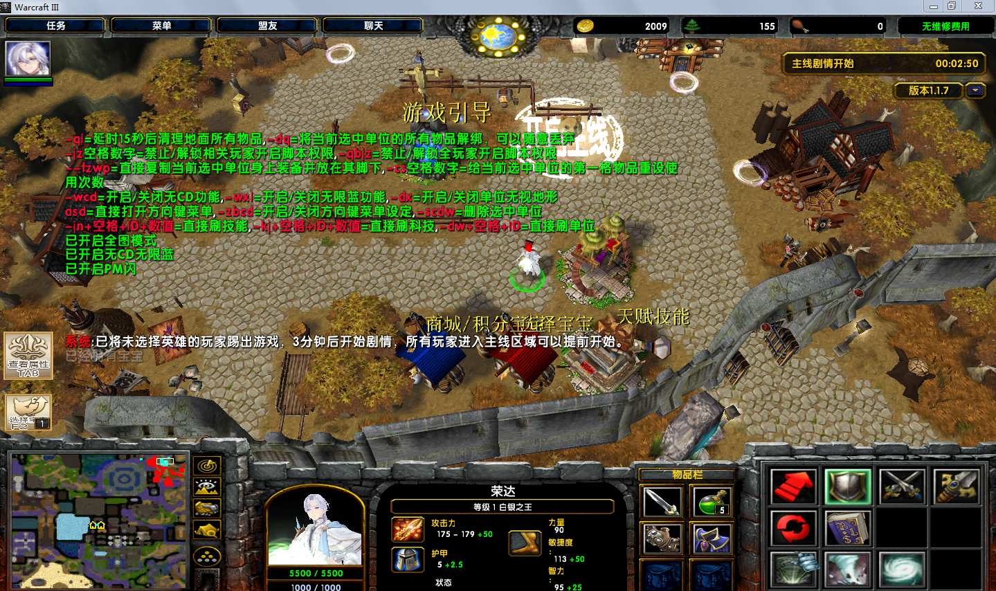 地图名字:白晶王冠Ⅲ终末夙愿1.1.7地图下载+全商城特权+全存档+隐藏英雄+无CD+指令功能