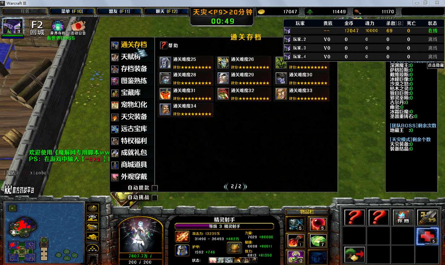 地图名字:弓手大作战1.9.13地图下载+全商城特权+全存档+无CD+指令功能