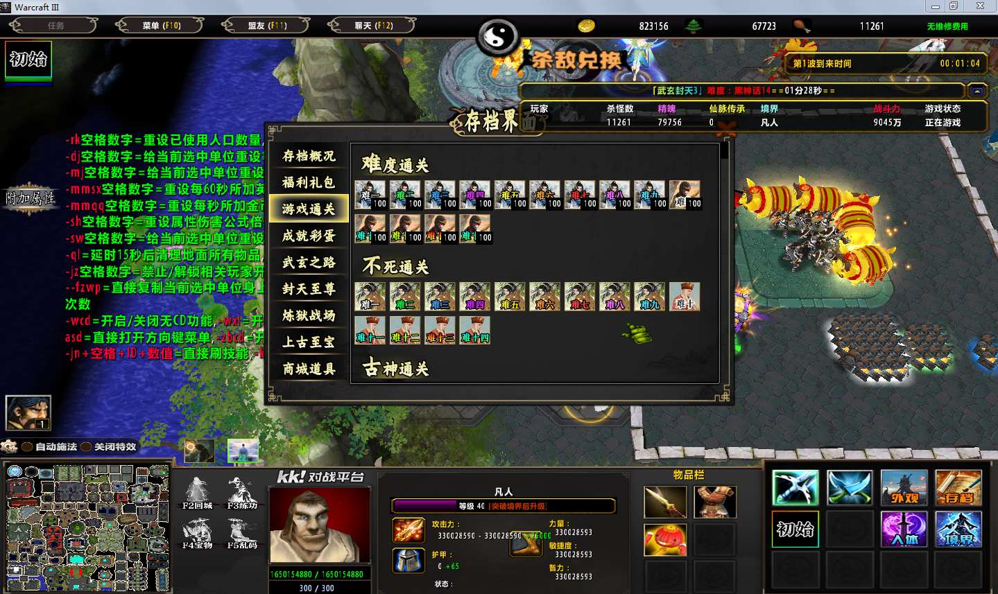 地图名字:武玄封天3 2.6.1地图下载+全商城特权+全存档+无CD+指令功能