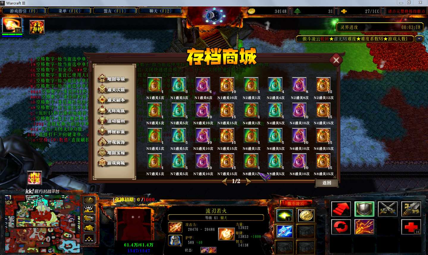 地图名字:傲斗凌云轮回1.0.8地图下载+全商城特权+全存档+隐藏英雄+无CD+指令功能