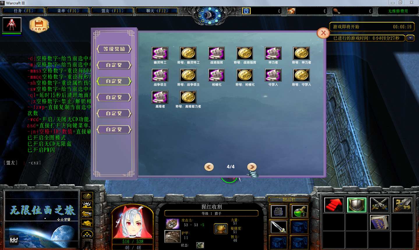 地图名字:无限位面之旅1.9.30地图下载+全商城特权+全存档+隐藏英雄+无CD+指令功能