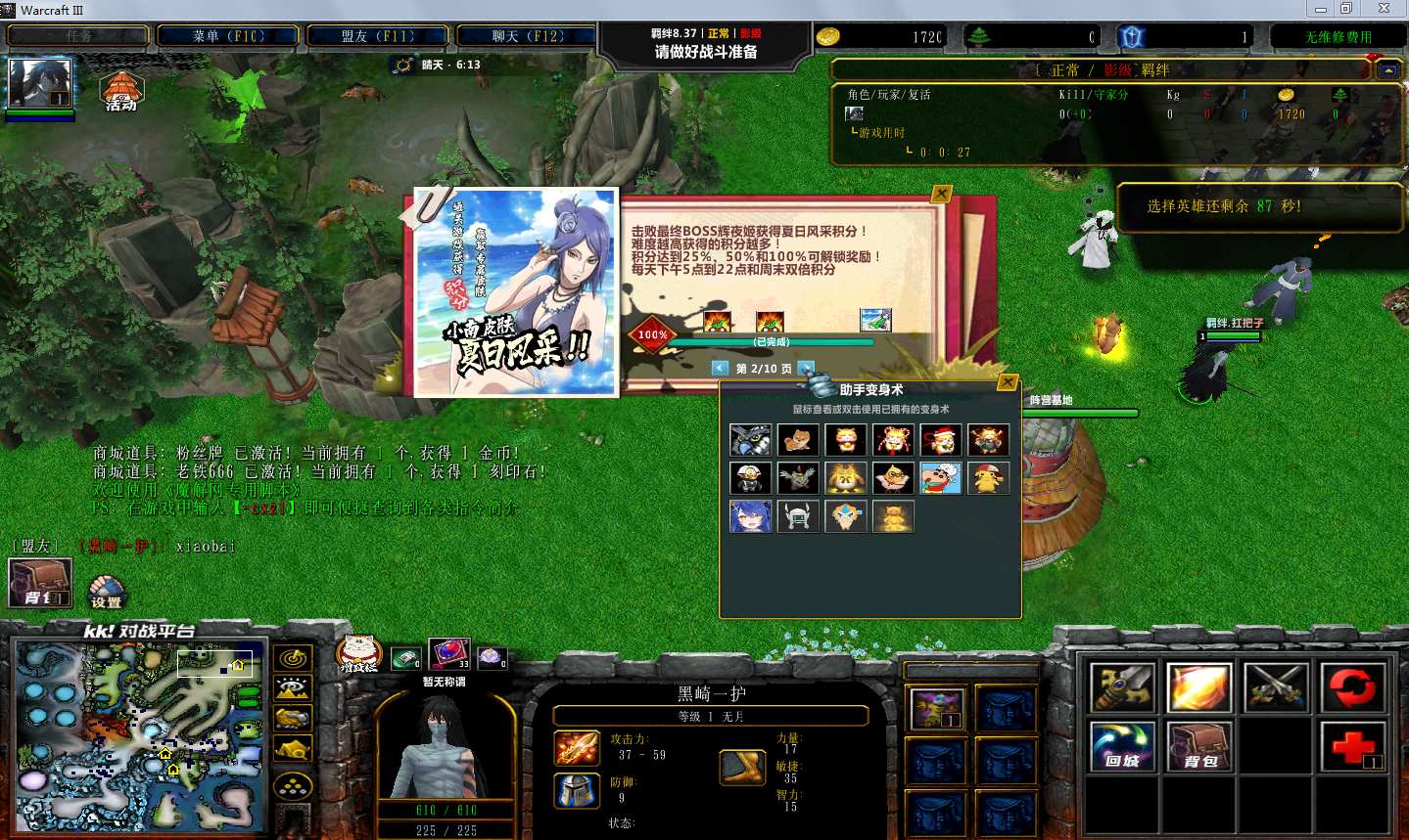 地图名字:火影忍者羁绊1 8.3.7地图下载+全商城特权+全存档+隐藏英雄+无CD+指令功能