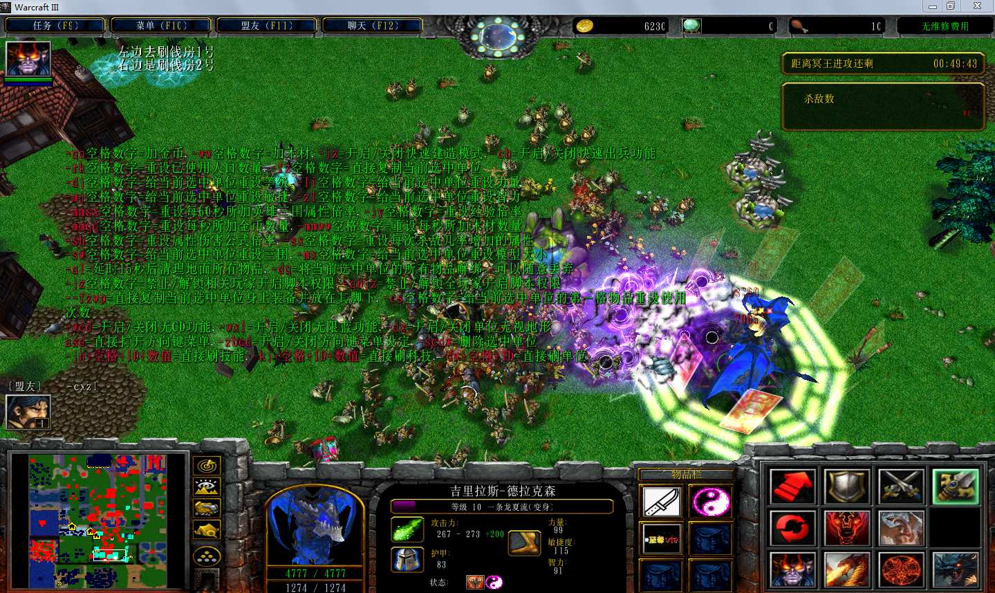 地图名字:非常难的英雄守城奥义1.8.7地图下载+全商城特权+隐藏英雄+无CD+指令功能