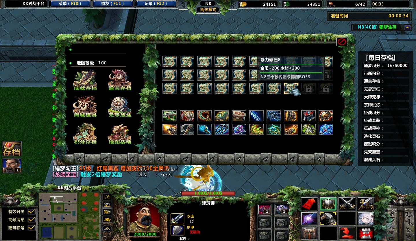 地图名字:猎梦生存1.0.20地图下载+全商城特权+全存档+无CD+指令功能