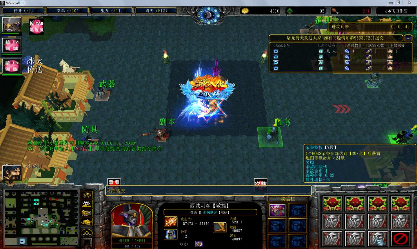 地图名字:屠龙倚天6.8.0地图下载+全商城特权+全存档+隐藏英雄+无CD+指令功能