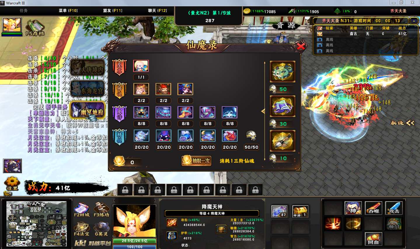 地图名字:齐天大圣1.0.214地图下载+全商城特权+全存档+隐藏英雄+无CD+指令功能