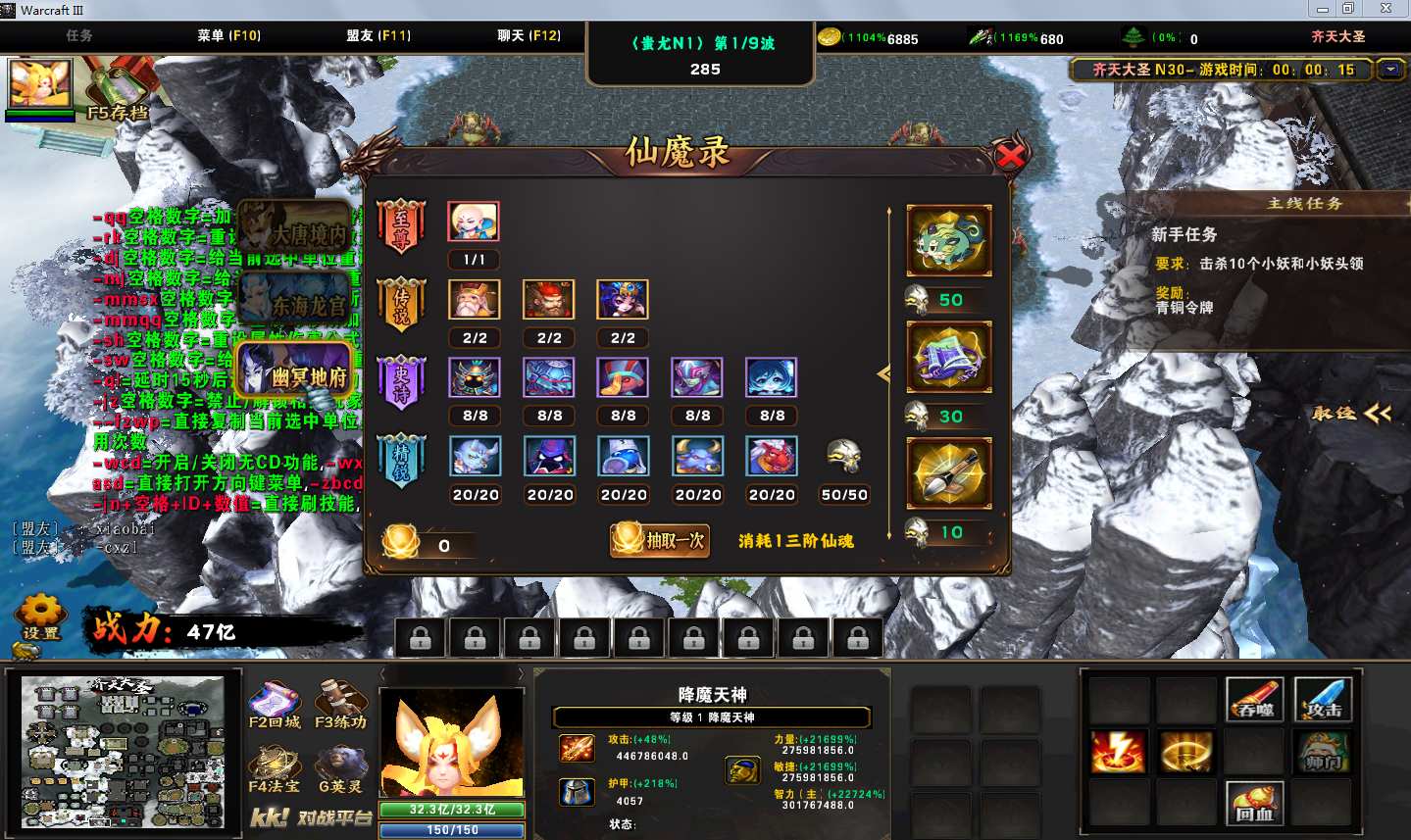 地图名字:齐天大圣1.0.216地图下载+全商城特权+全存档+隐藏英雄+无CD+指令功能