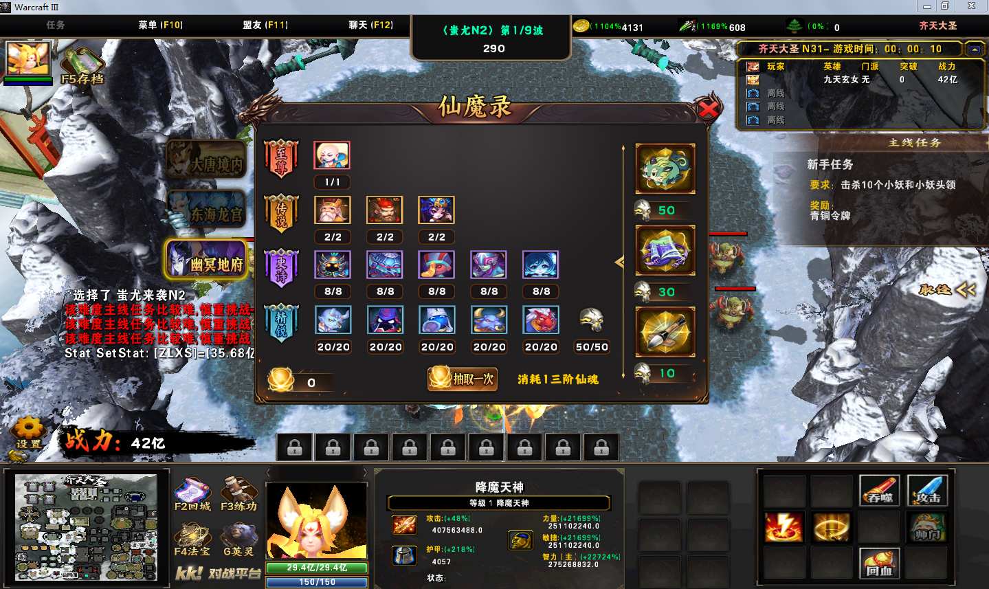 地图名字:齐天大圣1.0.218地图下载+全商城特权+全存档+隐藏英雄+无CD+指令功能