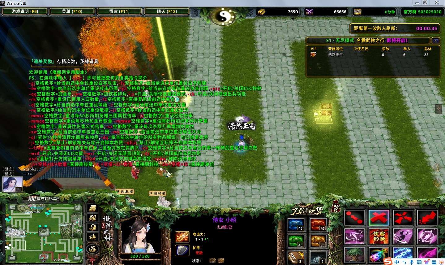 地图名字:混乱武林TD刀剑如梦6.9.168地图下载+全商城特权+全存档+隐藏英雄+无CD+指令功能