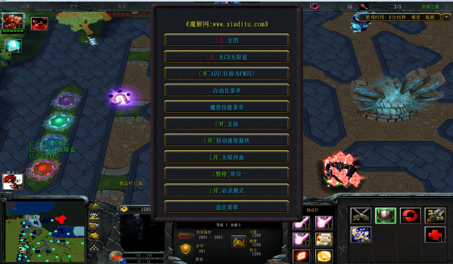 | 技能菜单【光环类技能】 | 自动化菜单【自动加钱木,提升英雄三围】 |