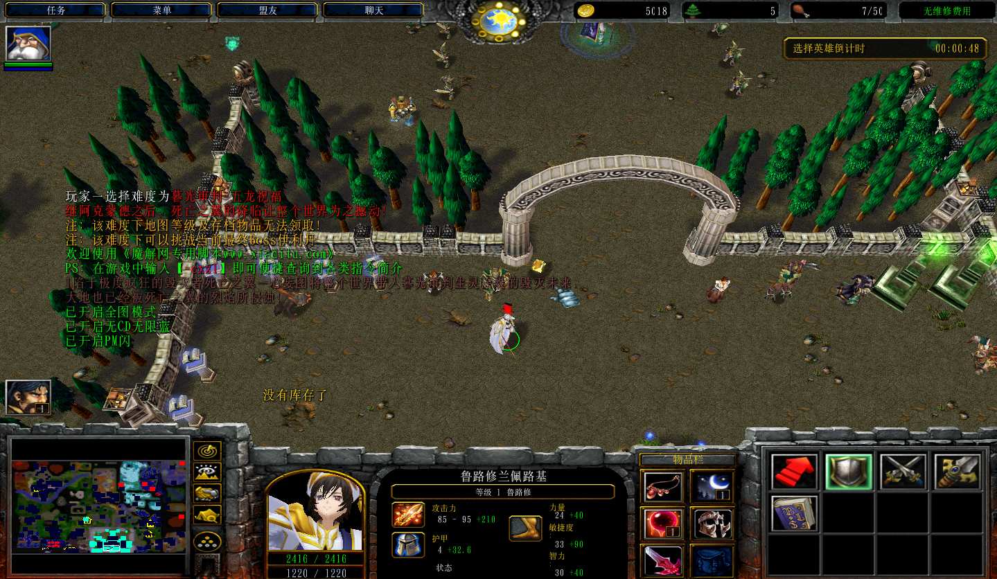 地图名字:燃烧之乡15.5.5地图下载+全商城特权+全存档+隐藏英雄+无CD+指令功能