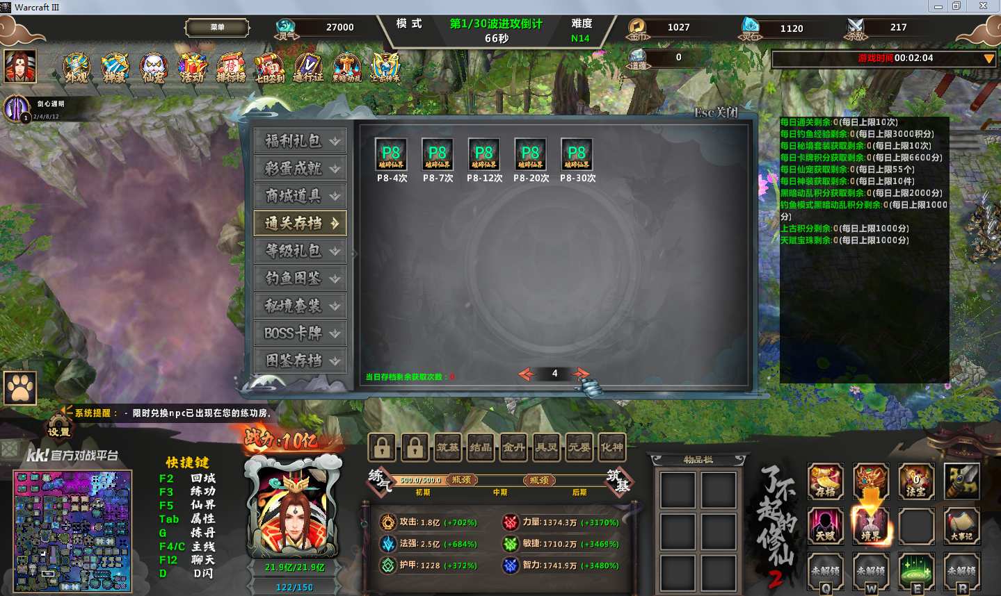 地图名字:了不起的修仙2 1.9.5地图下载+全商城特权+全存档+无CD+指令功能