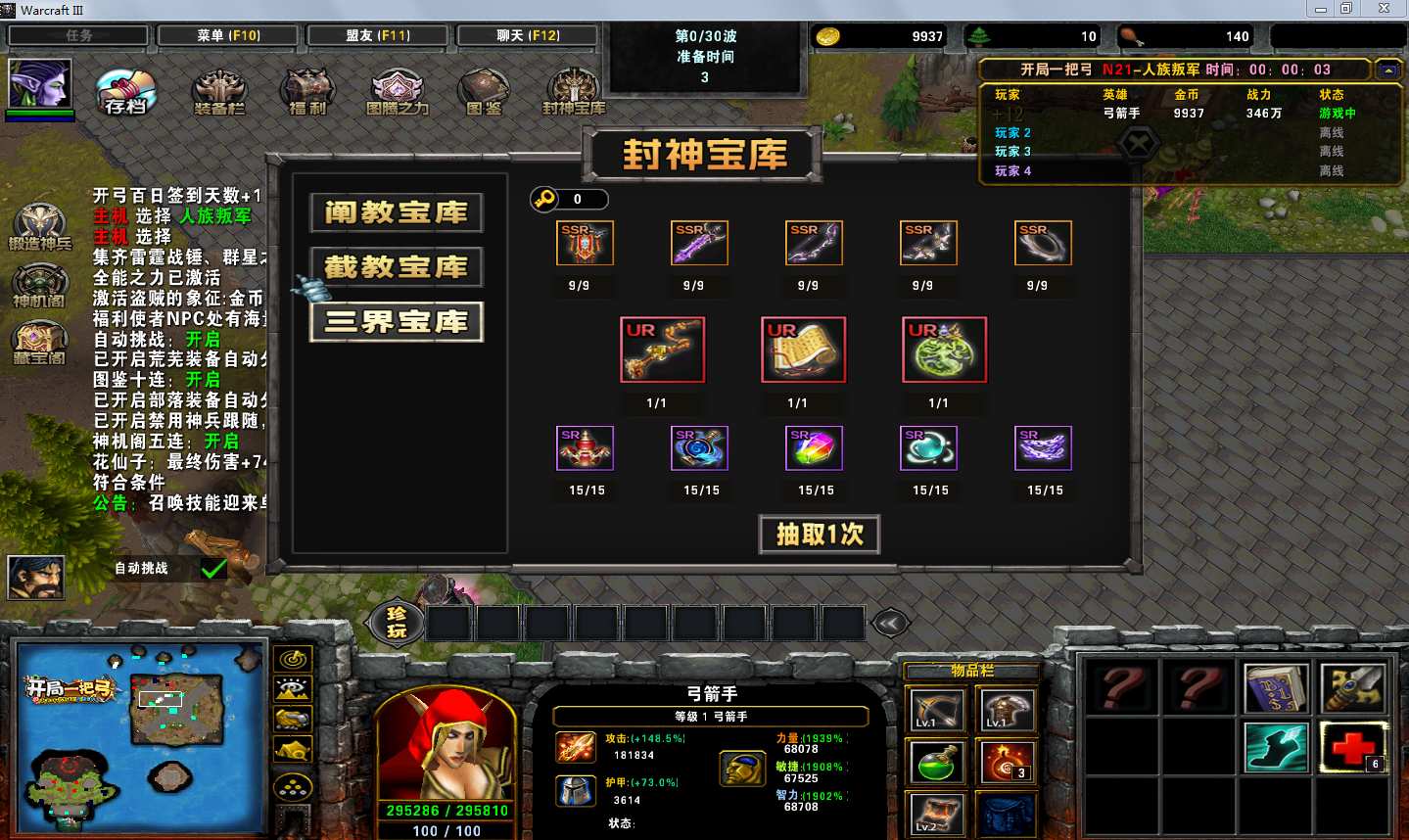 地图名字:开局一把弓1.0.151地图下载+全商城特权+全存档+无CD+指令功能