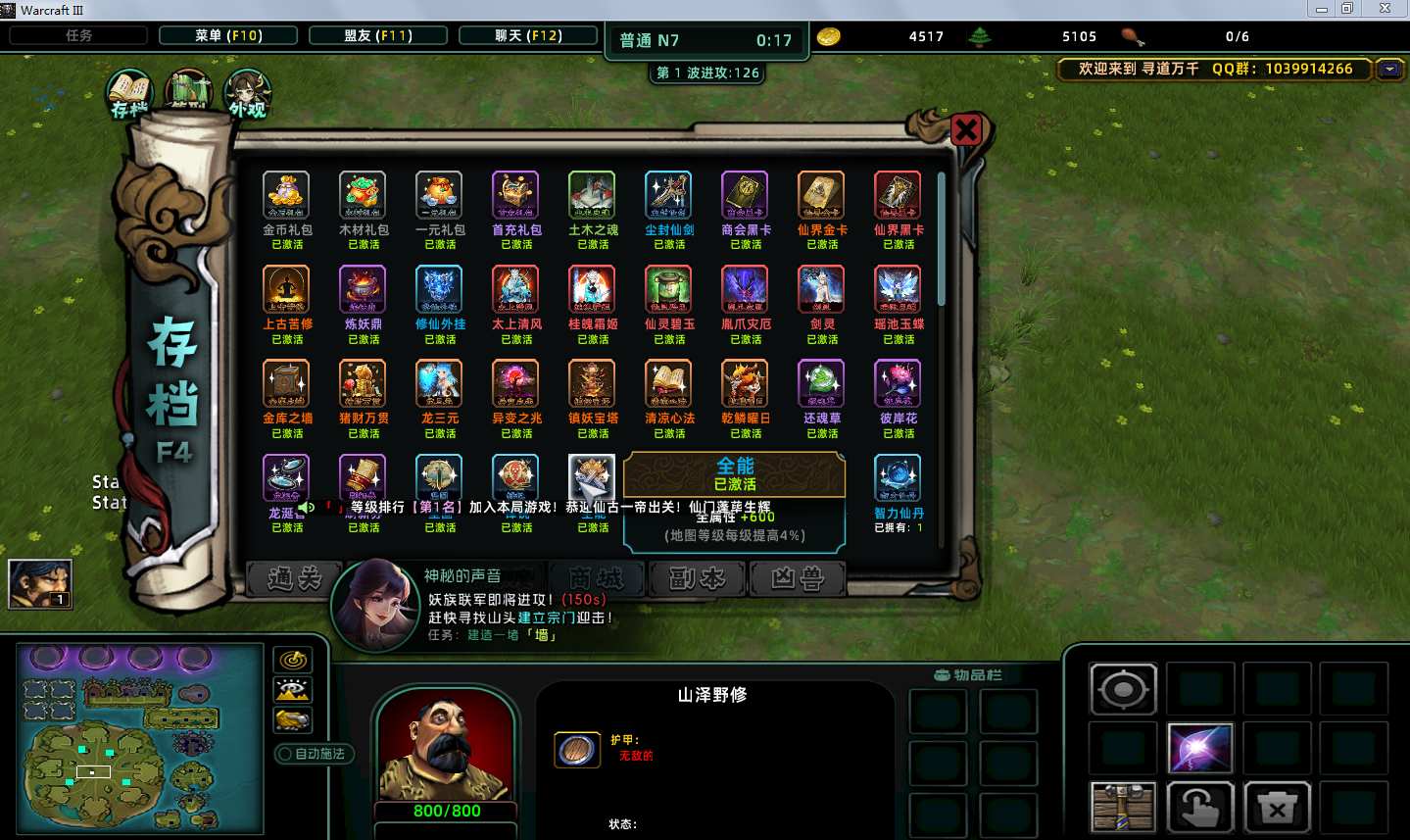 | 技能菜单【光环类技能】 | 自动化菜单【自动加钱木,提升英雄三围】 |