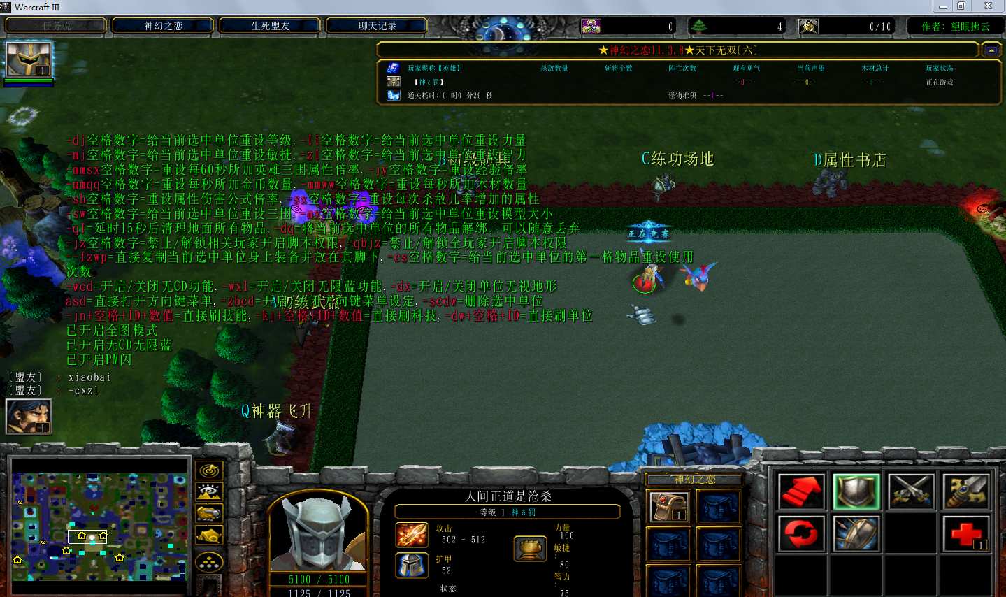 地图名字:神幻之恋3.8.1地图下载+全商城特权+全存档+隐藏英雄+无CD+指令功能