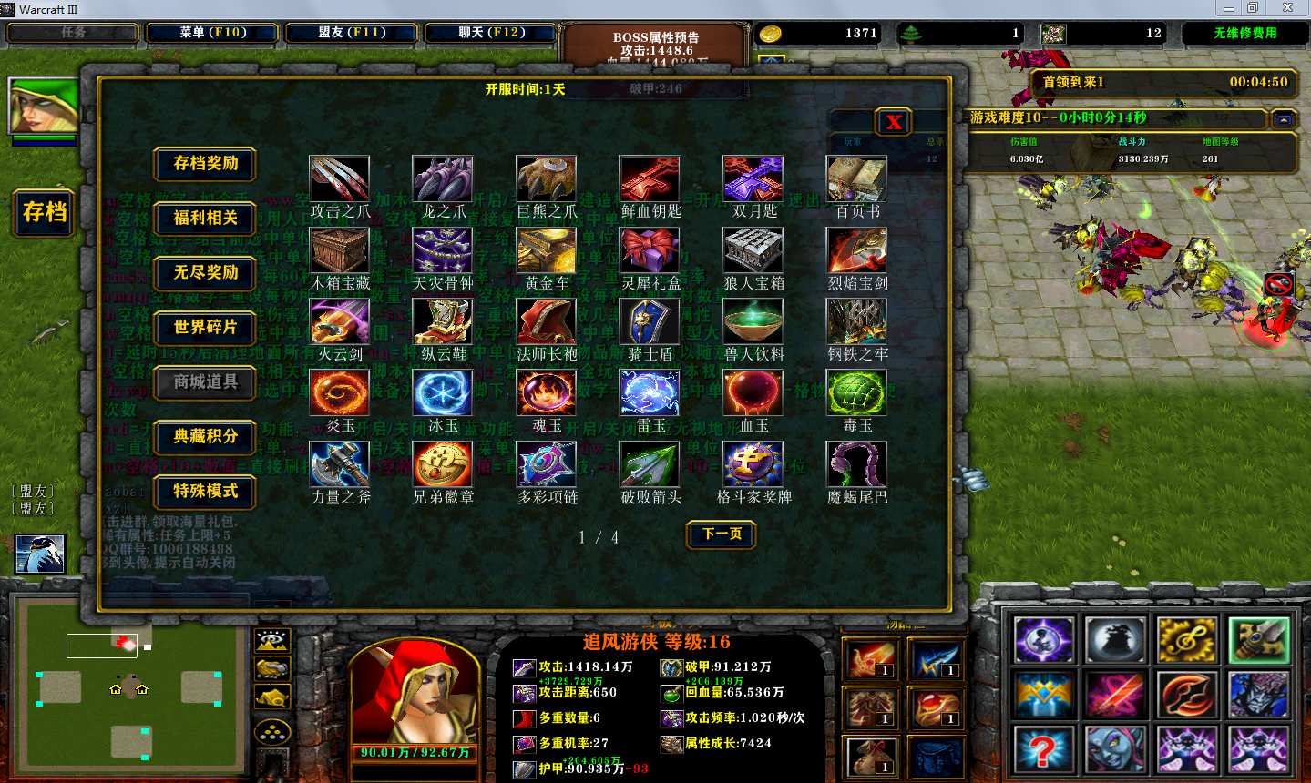 | 技能菜单【光环类技能】 | 自动化菜单【自动加钱木,提升英雄三围】 |